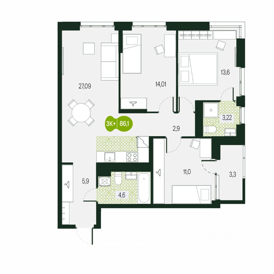 86 м² · Этаж 1 из 9