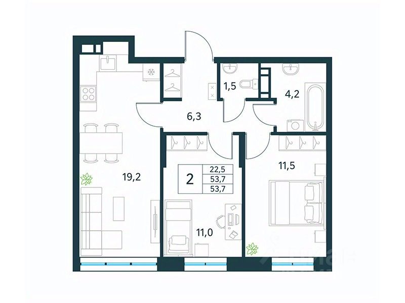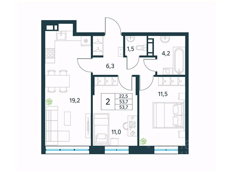55 м² · Этаж 2 из 18
