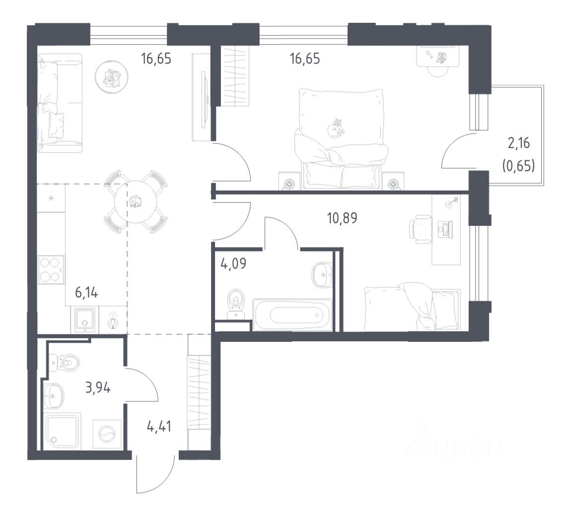 65 м² · Этаж 10 из 17