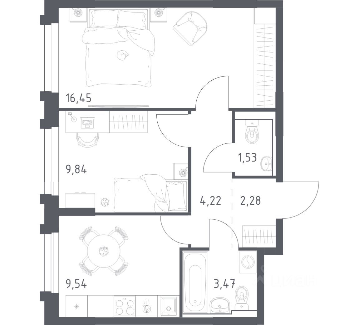 Строим кварталы для жизни с заботой о будущем. Предлагается 1-комнатная квартира комфорт-класса площадью 45.33 кв.м в корпусе 1.4КВ на 16-м этаже, в жилом комплексе ''Рябиновая Роща''. Квартиры без отделки. Доступность опции ''отделка'' и возможность комплектации мебелью и декором уточняйте у застройщика. Выбирайте свое место для счастливой жизни: от уютной студии до просторной 3-комнатной квартиры. Хотите погрузиться в творческий процесс ремонта? Присмотритесь к вариантам предчистовой отделки. Если хотите сразу отпраздновать новоселье, поручите нам работы по отделке. Мы установим двери, окна и сантехнику, положим ламинат и плитку. На стенах будут обои, которые можно перекрашивать до 8 раз. По вашему желанию мы подготовим в вашей квартире все для комфортной жизни. Откройте дверь своим ключом и пройдитесь по комнатам. Там уже будет мебель, светильники и другие элементы декора. А на кухне бежевых оттенков есть все, чтобы сразу приготовить вкусный ужин для близких. Приобрести квартиры возможно по специальным акциям от застройщика, с текущими условиями акций можно ознакомиться в блоке ''Акций''. Цена динамическая и может отличаться, уточняйте актуальность у застройщика. В ''Рябиновой Роще'' жители смогут наслаждаться прогулками по благоустроенной набережной и собственной рябиновой роще. До центра Читы — всего 13 минут на машине. В квартале будет 2 детских сада на 300 и 305 мест и школа на 1 100 мест. На первых этажах откроются магазины, кафе и салоны красоты. Совсем рядом появится благоустроенная набережная длиной 14 км для прогулок и утренних пробежек. ''Рябиновая Роща'' — это комплекс с домами высотой от 9 до 17 этажей в монохромных оттенках с красными акцентами. Дворы проекта вдохновлены Даурским заповедником. Жители смогут заниматься спортом на свежем воздухе, собираться на праздники на общей площади или читать в рябиновой роще. Для детей — современные игровые площадки. Для автомобилистов предусмотрены 4 многоуровневых паркинга. Входы в лобби находятся на уровне земли, внутри есть места для хранения колясок и велосипедов. Квартиры с увеличенными окнами и видом на реку, гардеробными, кухнями-гостиными и гостевыми санузлами.