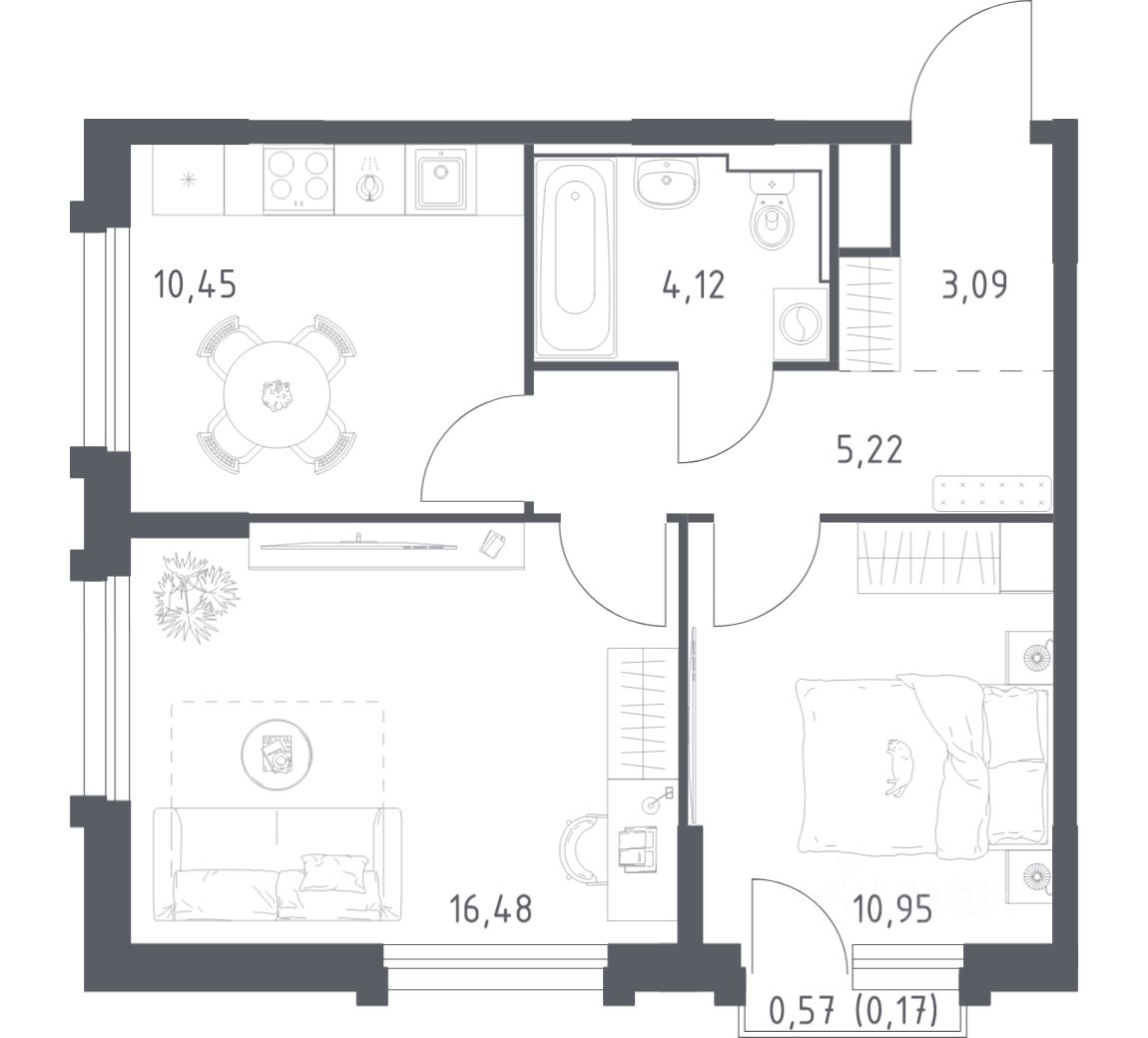 43 м² · Этаж 16 из 17