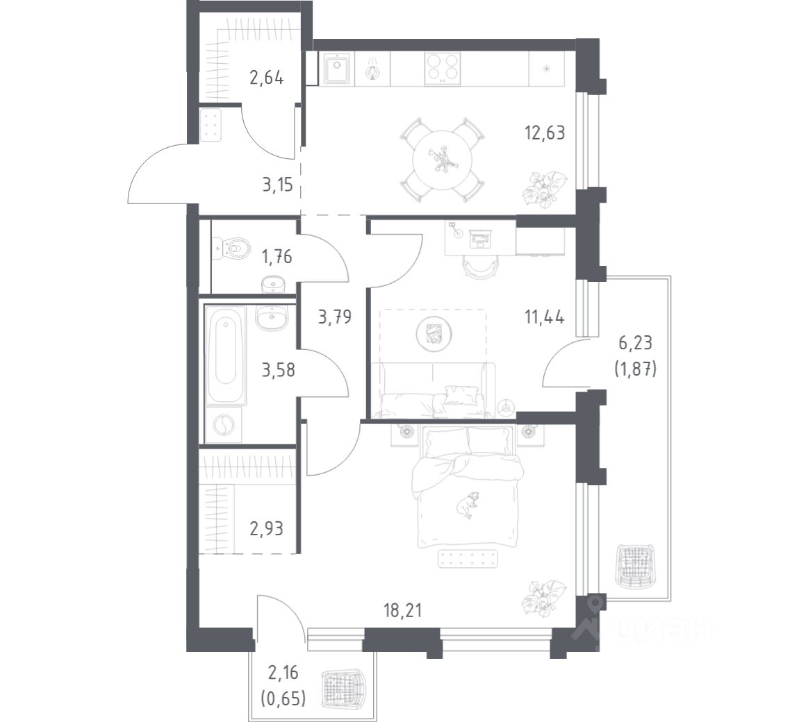 57 м² · Этаж 12 из 18
