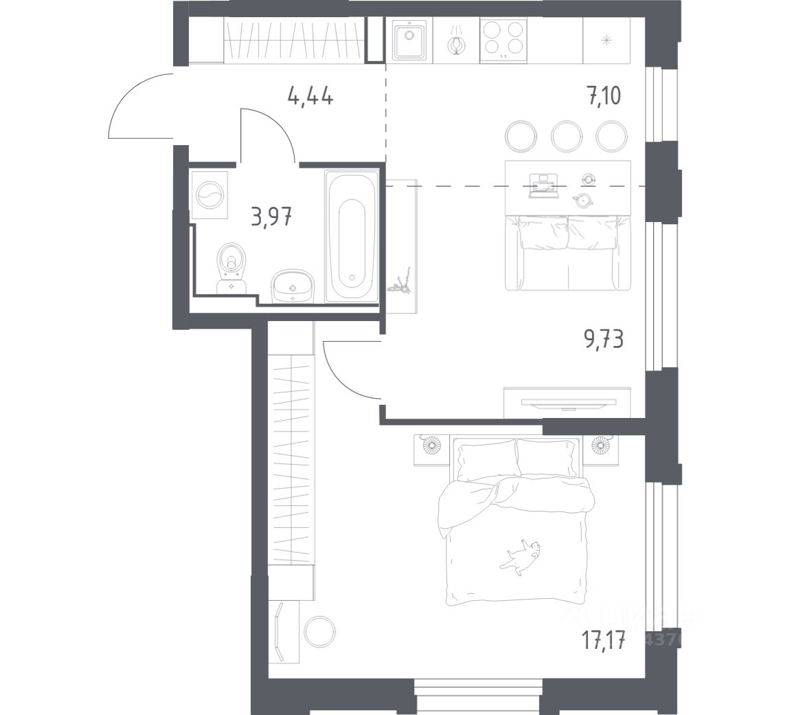28 м² · Этаж 15 из 17