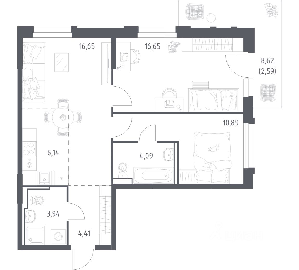 Строим кварталы для жизни с заботой о будущем. Предлагается 2-комнатная квартира комфорт-класса площадью 62.63 кв.м в корпусе 1.1КВ на 10-м этаже, в жилом комплексе ''Рябиновая Роща''. Квартиры без отделки. Доступность опции ''отделка'' и возможность комплектации мебелью и декором уточняйте у застройщика. Выбирайте свое место для счастливой жизни: от уютной студии до просторной 3-комнатной квартиры. Хотите погрузиться в творческий процесс ремонта? Присмотритесь к вариантам предчистовой отделки. Если хотите сразу отпраздновать новоселье, поручите нам работы по отделке. Мы установим двери, окна и сантехнику, положим ламинат и плитку. На стенах будут обои, которые можно перекрашивать до 8 раз. По вашему желанию мы подготовим в вашей квартире все для комфортной жизни. Откройте дверь своим ключом и пройдитесь по комнатам. Там уже будет мебель, светильники и другие элементы декора. А на кухне бежевых оттенков есть все, чтобы сразу приготовить вкусный ужин для близких. Приобрести квартиры возможно по специальным акциям от застройщика, с текущими условиями акций можно ознакомиться в блоке ''Акций''. Цена динамическая и может отличаться, уточняйте актуальность у застройщика. В ''Рябиновой Роще'' жители смогут наслаждаться прогулками по благоустроенной набережной и собственной рябиновой роще. До центра Читы — всего 13 минут на машине. В квартале будет 2 детских сада на 300 и 305 мест и школа на 1 100 мест. На первых этажах откроются магазины, кафе и салоны красоты. Совсем рядом появится благоустроенная набережная длиной 14 км для прогулок и утренних пробежек. ''Рябиновая Роща'' — это комплекс с домами высотой от 9 до 17 этажей в монохромных оттенках с красными акцентами. Дворы проекта вдохновлены Даурским заповедником. Жители смогут заниматься спортом на свежем воздухе, собираться на праздники на общей площади или читать в рябиновой роще. Для детей — современные игровые площадки. Для автомобилистов предусмотрены 4 многоуровневых паркинга. Входы в лобби находятся на уровне земли, внутри есть места для хранения колясок и велосипедов. Квартиры с увеличенными окнами и видом на реку, гардеробными, кухнями-гостиными и гостевыми санузлами.