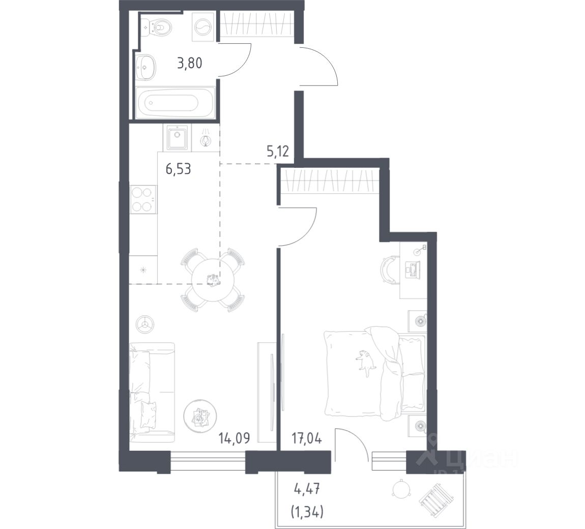 47 м² · Этаж 14 из 17