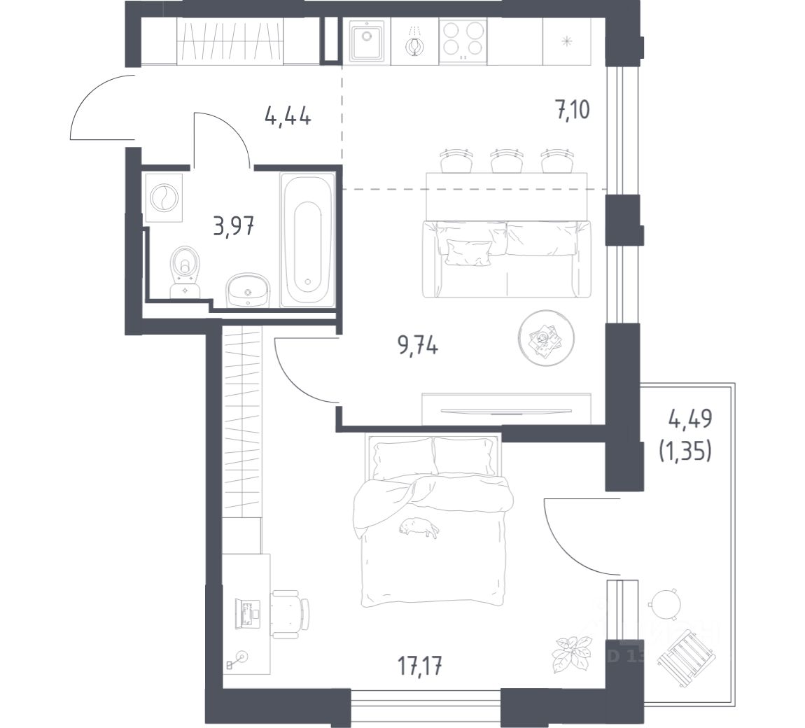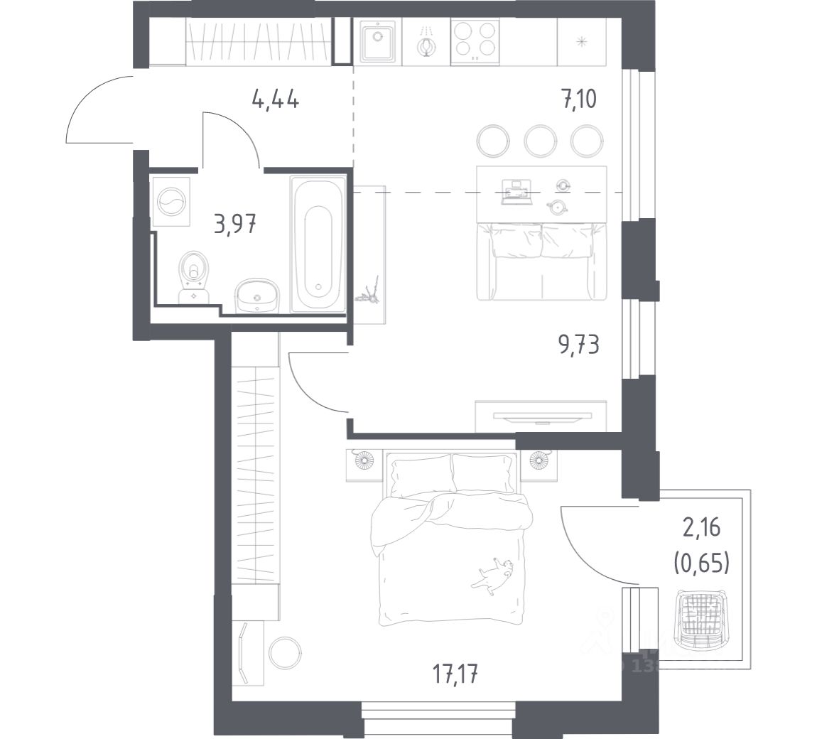 43 м² · Этаж 13 из 17
