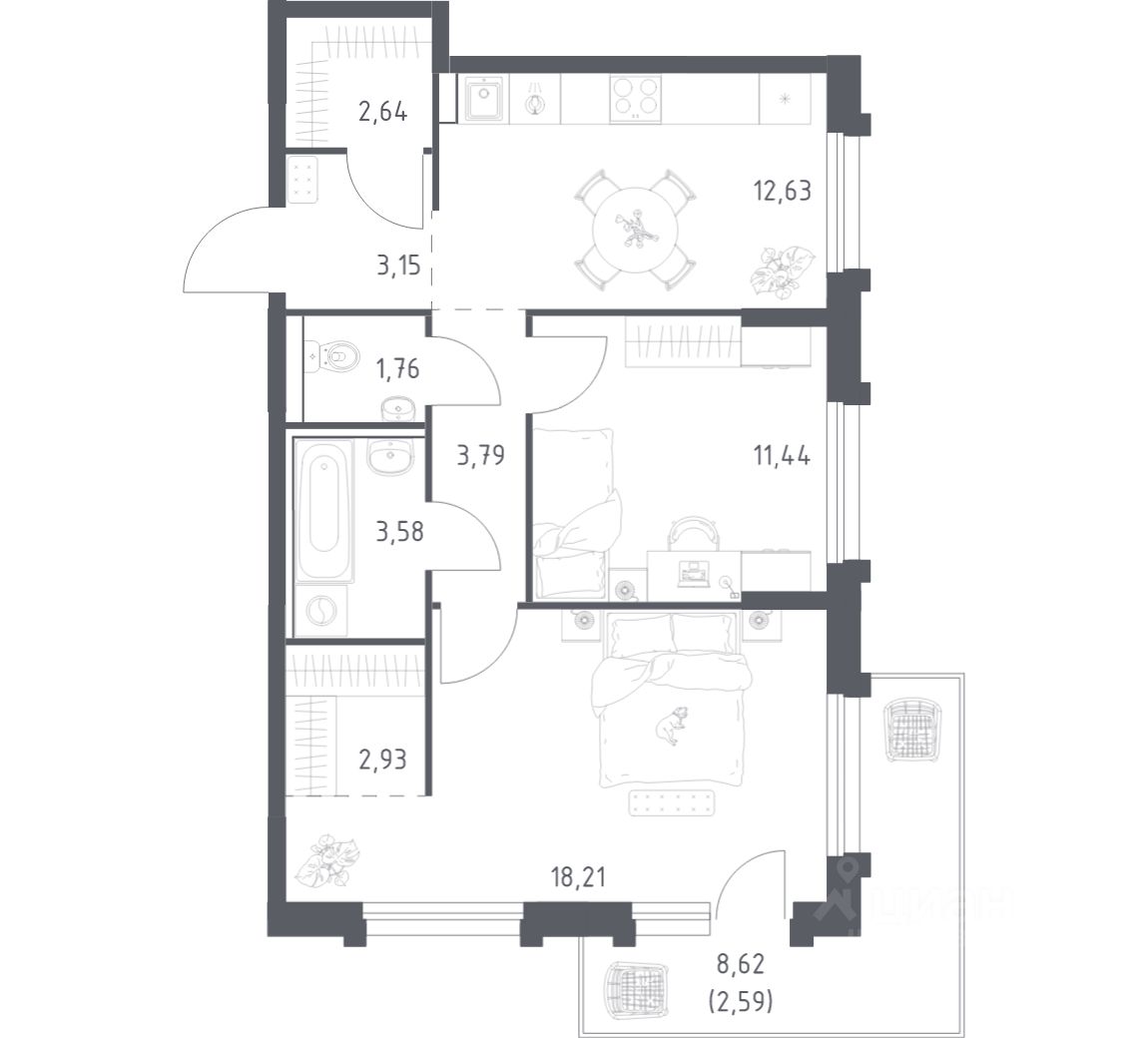 Строим кварталы для жизни с заботой о будущем. Предлагается 2-комнатная квартира комфорт-класса площадью 62.72 кв.м в корпусе 1.4КВ на 17-м этаже, в жилом комплексе ''Рябиновая Роща''. Квартиры без отделки. Доступность опции ''отделка'' и возможность комплектации мебелью и декором уточняйте у застройщика. Выбирайте свое место для счастливой жизни: от уютной студии до просторной 3-комнатной квартиры. Хотите погрузиться в творческий процесс ремонта? Присмотритесь к вариантам предчистовой отделки. Если хотите сразу отпраздновать новоселье, поручите нам работы по отделке. Мы установим двери, окна и сантехнику, положим ламинат и плитку. На стенах будут обои, которые можно перекрашивать до 8 раз. По вашему желанию мы подготовим в вашей квартире все для комфортной жизни. Откройте дверь своим ключом и пройдитесь по комнатам. Там уже будет мебель, светильники и другие элементы декора. А на кухне бежевых оттенков есть все, чтобы сразу приготовить вкусный ужин для близких. Приобрести квартиры возможно по специальным акциям от застройщика, с текущими условиями акций можно ознакомиться в блоке ''Акций''. Цена динамическая и может отличаться, уточняйте актуальность у застройщика. В ''Рябиновой Роще'' жители смогут наслаждаться прогулками по благоустроенной набережной и собственной рябиновой роще. До центра Читы — всего 13 минут на машине. В квартале будет 2 детских сада на 300 и 305 мест и школа на 1 100 мест. На первых этажах откроются магазины, кафе и салоны красоты. Совсем рядом появится благоустроенная набережная длиной 14 км для прогулок и утренних пробежек. ''Рябиновая Роща'' — это комплекс с домами высотой от 9 до 17 этажей в монохромных оттенках с красными акцентами. Дворы проекта вдохновлены Даурским заповедником. Жители смогут заниматься спортом на свежем воздухе, собираться на праздники на общей площади или читать в рябиновой роще. Для детей — современные игровые площадки. Для автомобилистов предусмотрены 4 многоуровневых паркинга. Входы в лобби находятся на уровне земли, внутри есть места для хранения колясок и велосипедов. Квартиры с увеличенными окнами и видом на реку, гардеробными, кухнями-гостиными и гостевыми санузлами.