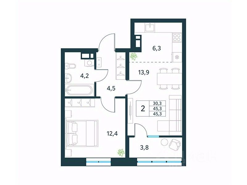 45 м² · Этаж 11 из 18