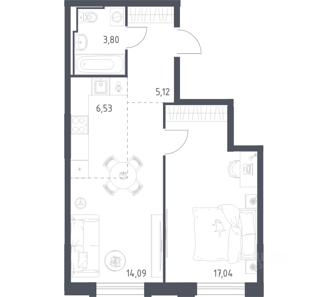 42 м² · Этаж 8 из 17