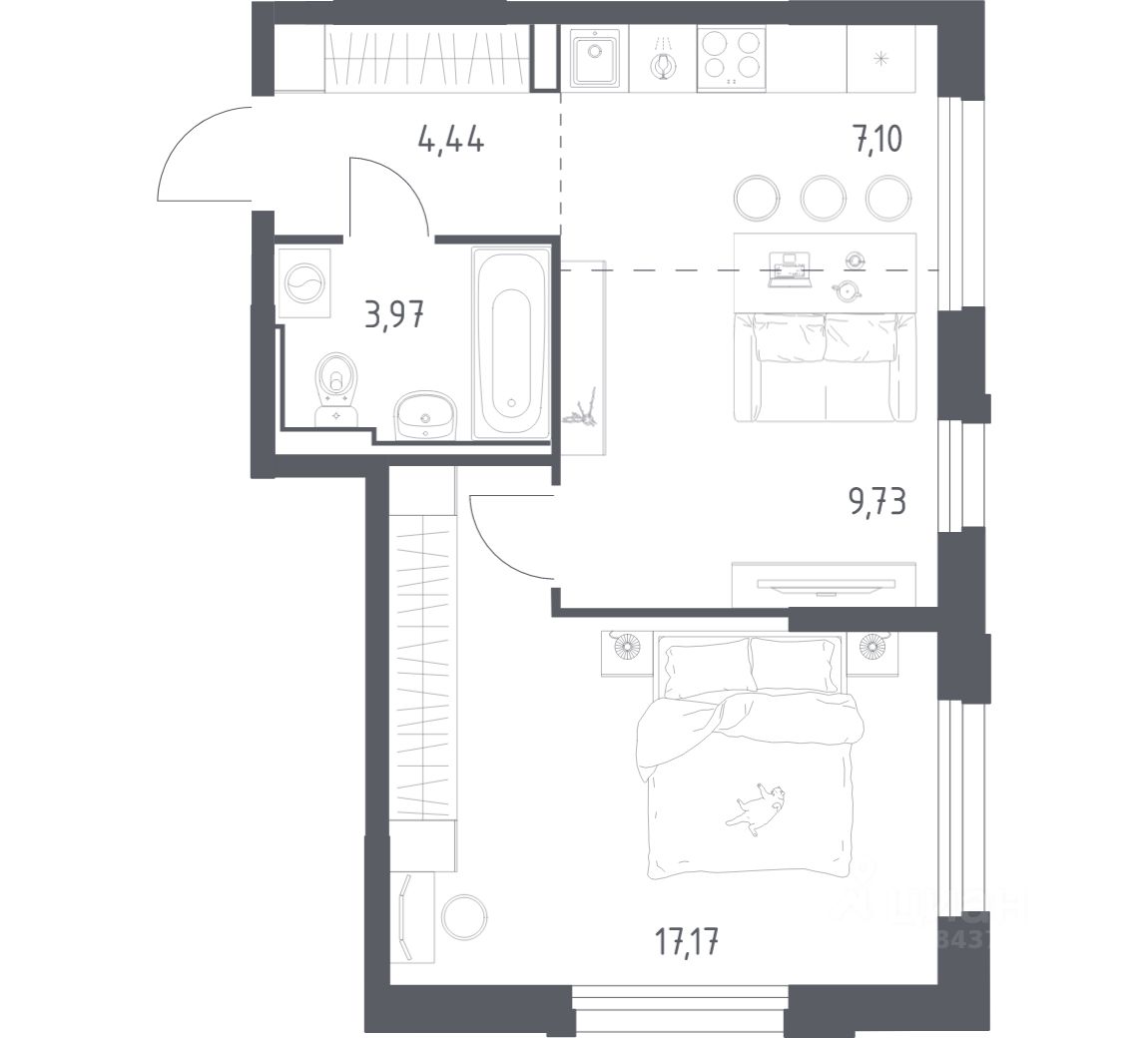 42 м² · Этаж 10 из 17