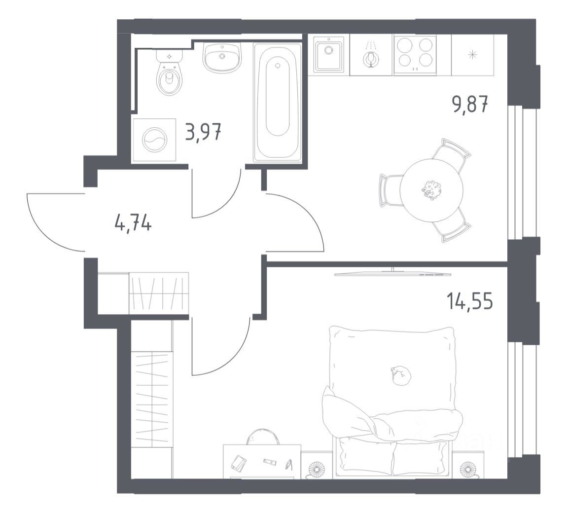 Строим кварталы для жизни с заботой о будущем. Предлагается 1-комнатная квартира комфорт-класса площадью 32.97 кв.м в корпусе 2.4КВ на 14-м этаже, в жилом комплексе ''Рябиновая Роща''. Квартиры без отделки. Доступность опции ''отделка'' и возможность комплектации мебелью и декором уточняйте у застройщика. Выбирайте свое место для счастливой жизни: от уютной студии до просторной 3-комнатной квартиры. Хотите погрузиться в творческий процесс ремонта? Присмотритесь к вариантам предчистовой отделки. Если хотите сразу отпраздновать новоселье, поручите нам работы по отделке. Мы установим двери, окна и сантехнику, положим ламинат и плитку. На стенах будут обои, которые можно перекрашивать до 8 раз. По вашему желанию мы подготовим в вашей квартире все для комфортной жизни. Откройте дверь своим ключом и пройдитесь по комнатам. Там уже будет мебель, светильники и другие элементы декора. А на кухне бежевых оттенков есть все, чтобы сразу приготовить вкусный ужин для близких. Приобрести квартиры возможно по специальным акциям от застройщика, с текущими условиями акций можно ознакомиться в блоке ''Акций''. Цена динамическая и может отличаться, уточняйте актуальность у застройщика. В ''Рябиновой Роще'' жители смогут наслаждаться прогулками по благоустроенной набережной и собственной рябиновой роще. До центра Читы — всего 13 минут на машине. В квартале будет 2 детских сада на 300 и 305 мест и школа на 1 100 мест. На первых этажах откроются магазины, кафе и салоны красоты. Совсем рядом появится благоустроенная набережная длиной 14 км для прогулок и утренних пробежек. ''Рябиновая Роща'' — это комплекс с домами высотой от 9 до 17 этажей в монохромных оттенках с красными акцентами. Дворы проекта вдохновлены Даурским заповедником. Жители смогут заниматься спортом на свежем воздухе, собираться на праздники на общей площади или читать в рябиновой роще. Для детей — современные игровые площадки. Для автомобилистов предусмотрены 4 многоуровневых паркинга. Входы в лобби находятся на уровне земли, внутри есть места для хранения колясок и велосипедов. Квартиры с увеличенными окнами и видом на реку, гардеробными, кухнями-гостиными и гостевыми санузлами.