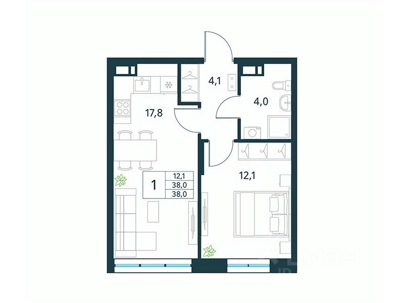Продается 1-комн. квартира площадью 38 кв.м, без отделки. Квартира расположена на 11 этаже 18 этажного монолитного дома (Литер 1 (3 очередь), Секция 1) в ЖК ''Хороший'' от АТОЛЛ.