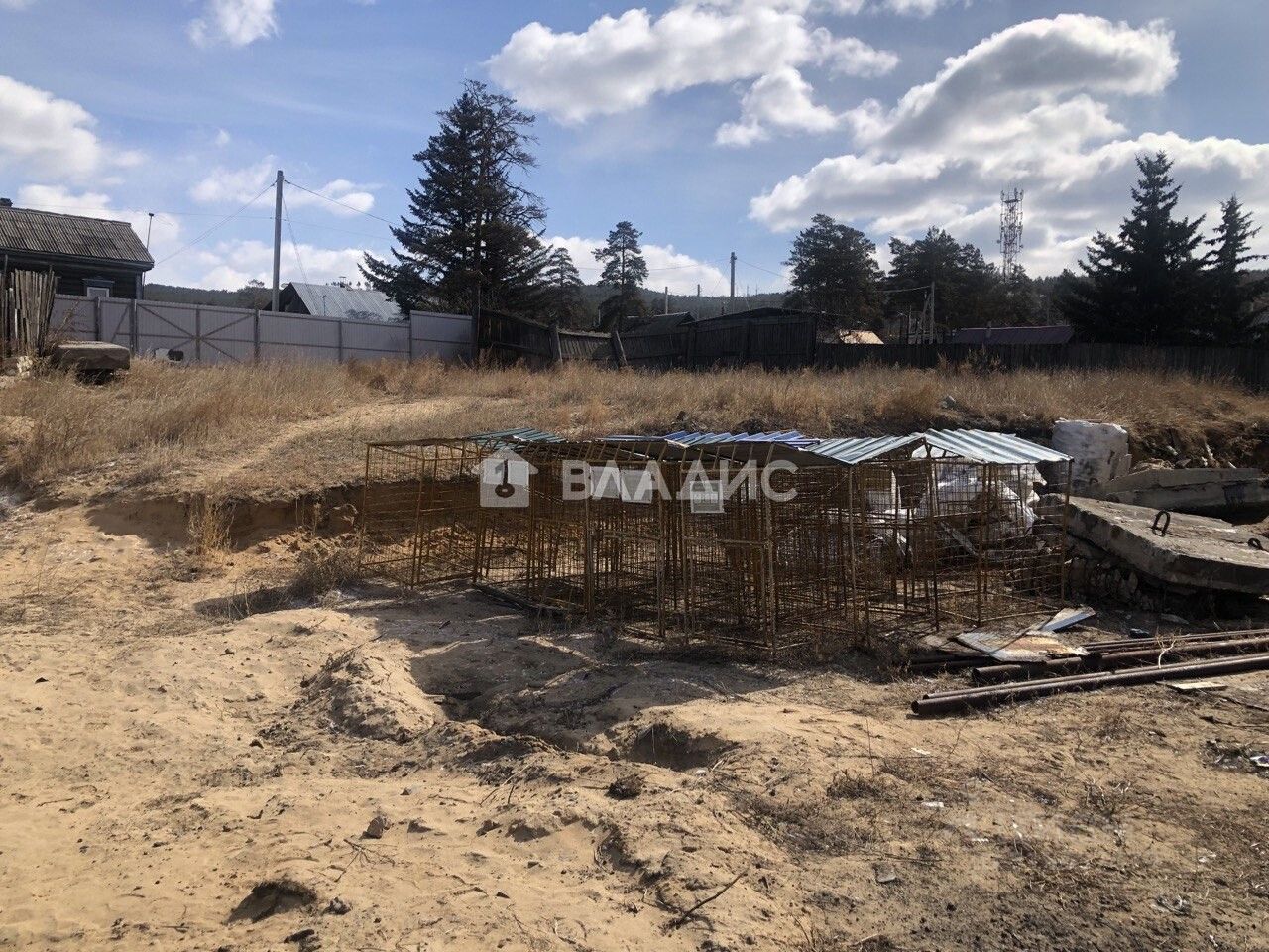 Участок огорожен забором из профлиста, имеется возможность провести централизованные коммуникации от рядом стоящего здания. Электричество не проведено.