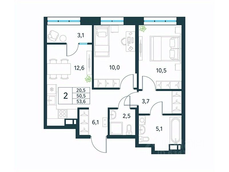 Продается 2-комн. квартира площадью 53,6 кв.м, без отделки. Квартира расположена на 7 этаже 18 этажного монолитно-кирпичного дома (Литер 2 (3 очередь), Секция 1) в ЖК ''Хороший'' от АТОЛЛ.