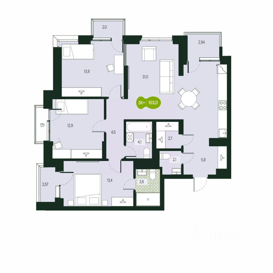 продам 4-к квартира18 643 414 ₽