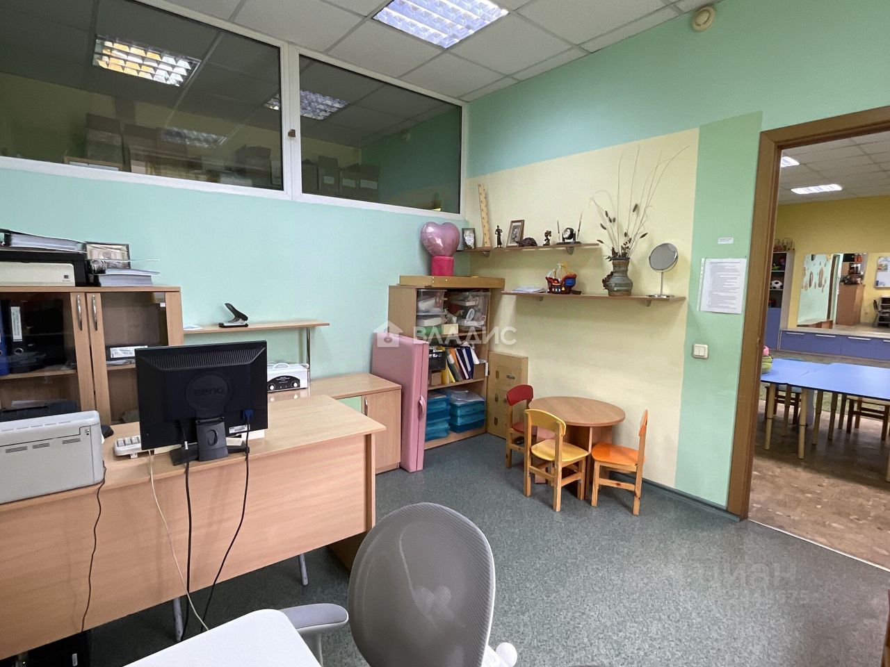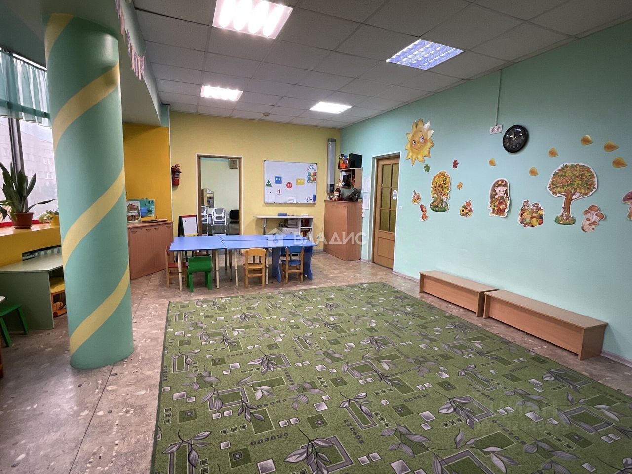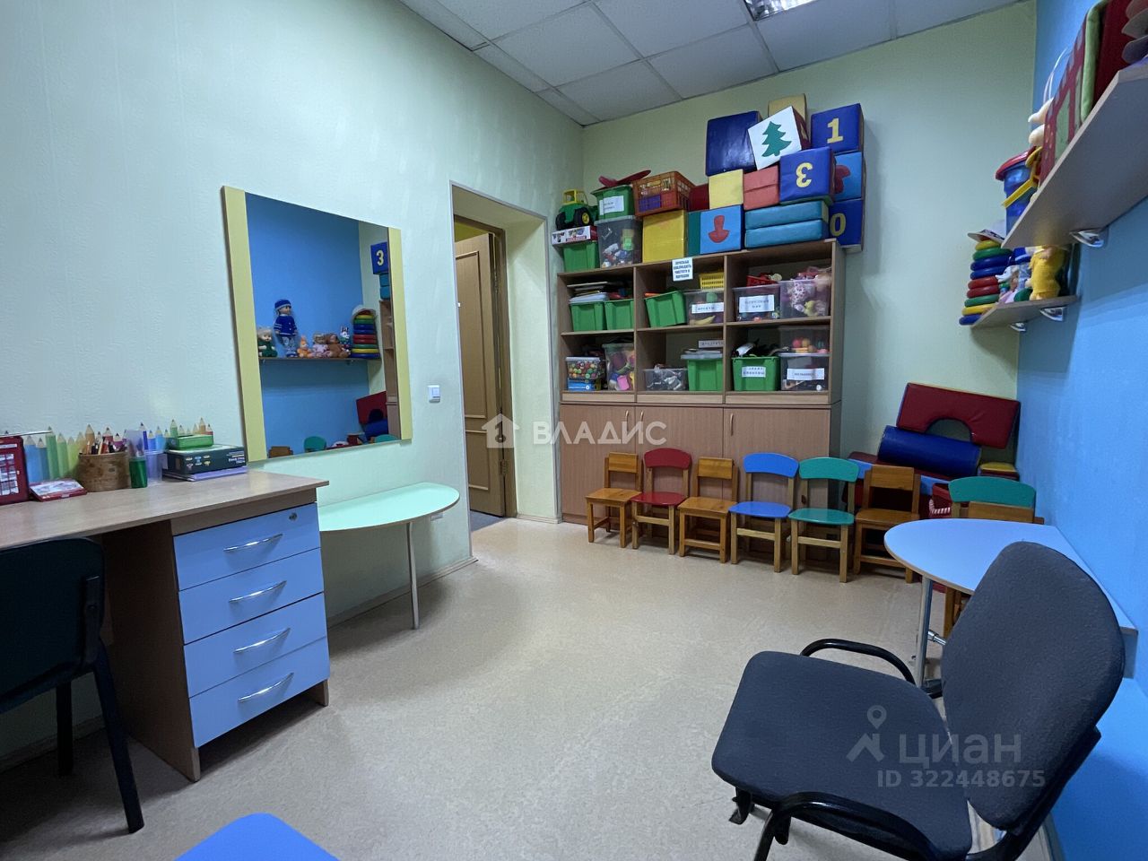 Помещение (детский развивающий центр) общей площадью 109, 7 кв находится на четвёртом этаже многоэтажного офисного центра, состоит из обучающих классов, игрового зала, кабинетов, раздевалки и кухонного помещения. Состояние отличное, мебель, обучающие материалы. Санузел раздельный.