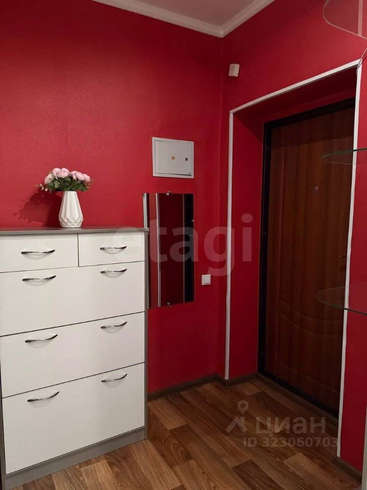 Продается ухоженная однокомнатная квартира площадью 37.3 кв.м на улице Усуглинская. Объект отличается продуманной планировкой и готов к комфортному проживанию благодаря свежему ремонту. Входная зона оформлена просторным коридором с большим зеркальной шкафом высотой 3 метра, что обеспечивает удобное размещение вещей, а также дополнена кладовой для сезонных предметов. Жилая комната является изолированным пространством для отдыха, здесь установлен диван, функциональная мебель и телевизор. Кухня оснащена современной техникой — холодильником, микроволновой печью и плитой, а также гарнитуром с практичной рабочей поверхностью и стеклянным обеденным столом со стульями. В санузле размещена стиральная машина и тумба под раковину.