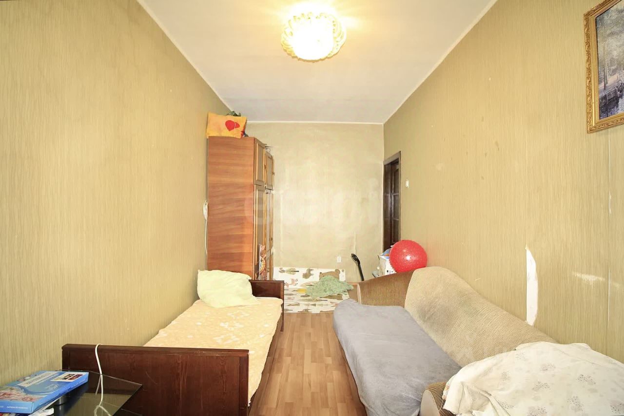 На полу линолеум, на стенах обои, пластиковые окна,требует частично косметики.