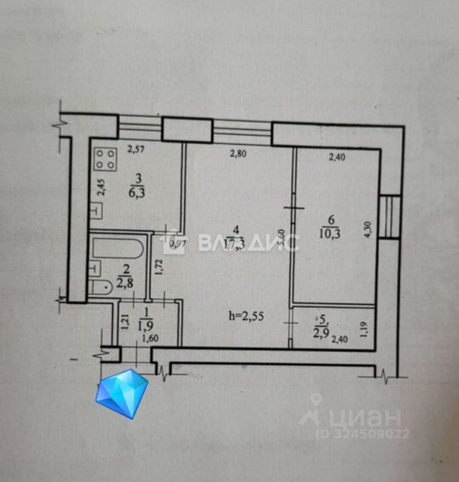 Общая площадь40,3 м2