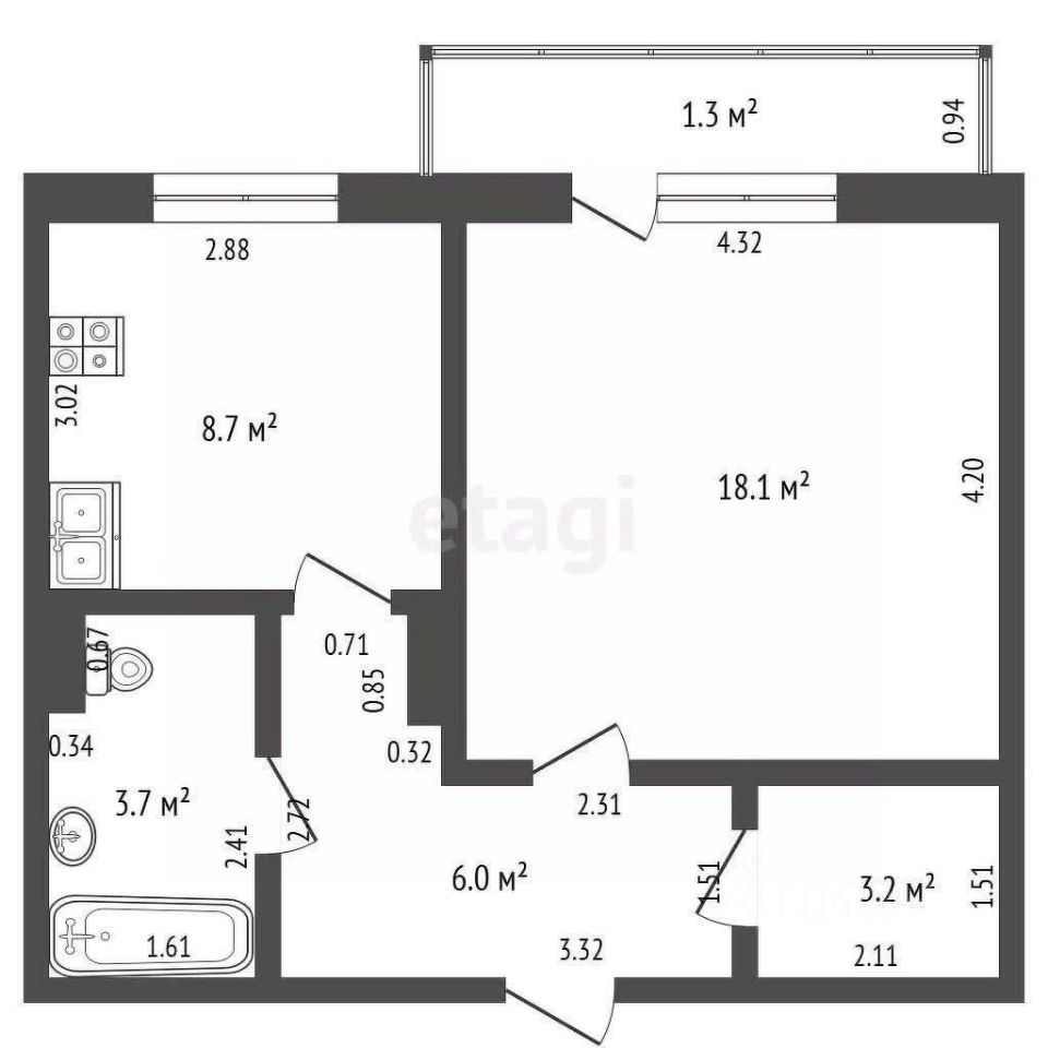 Продается 1-комнатная квартира с абсолютно новым ремонтом и балконом!