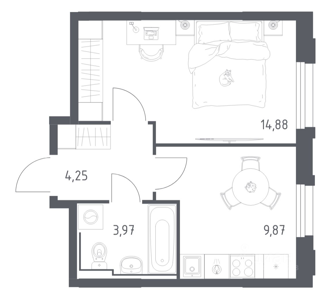 Квартиры без отделки. Доступность опции ''отделка'' и возможность комплектации мебелью и декором уточняйте у застройщика. Выбирайте свое место для счастливой жизни: от уютной студии до просторной 3-комнатной квартиры. Хотите погрузиться в творческий процесс ремонта? Присмотритесь к вариантам предчистовой отделки. Если хотите сразу отпраздновать новоселье, поручите нам работы по отделке. Мы установим двери, окна и сантехнику, положим ламинат и плитку. На стенах будут обои, которые можно перекрашивать до 8 раз.