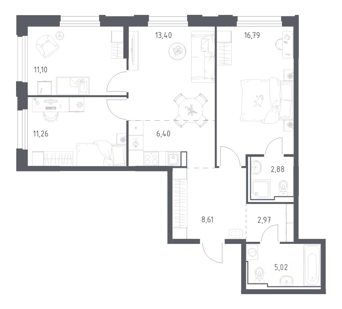 Квартиры без отделки. Доступность опции ''отделка'' и возможность комплектации мебелью и декором уточняйте у застройщика. Выбирайте свое место для счастливой жизни: от уютной студии до просторной 3-комнатной квартиры. Хотите погрузиться в творческий процесс ремонта? Присмотритесь к вариантам предчистовой отделки. Если хотите сразу отпраздновать новоселье, поручите нам работы по отделке. Мы установим двери, окна и сантехнику, положим ламинат и плитку. На стенах будут обои, которые можно перекрашивать до 8 раз.
