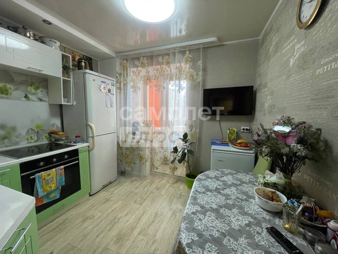 На полу во всей квартире постелен линолеум. В санузле на стенах и полу плитка. Окна в квартире выходят на школу 36 Квартира на 4 этаже 5-ти этажного дома