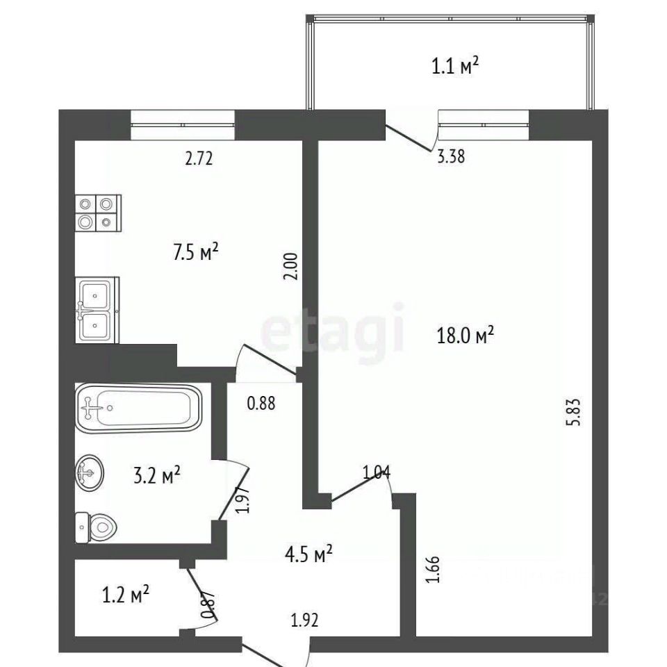 Общая площадь — 35,5 м²