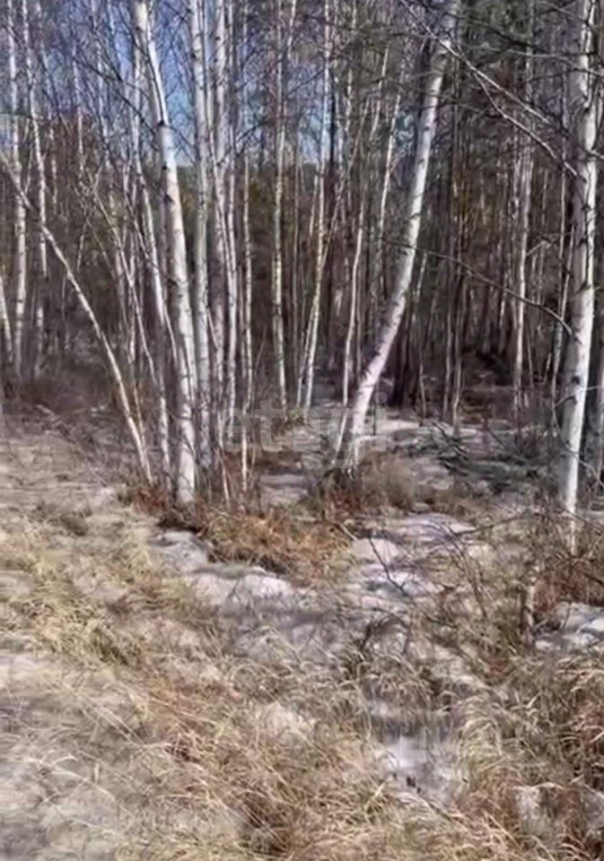 Земля необработана, на участке растут деревца. По периметру не огорожен забором.