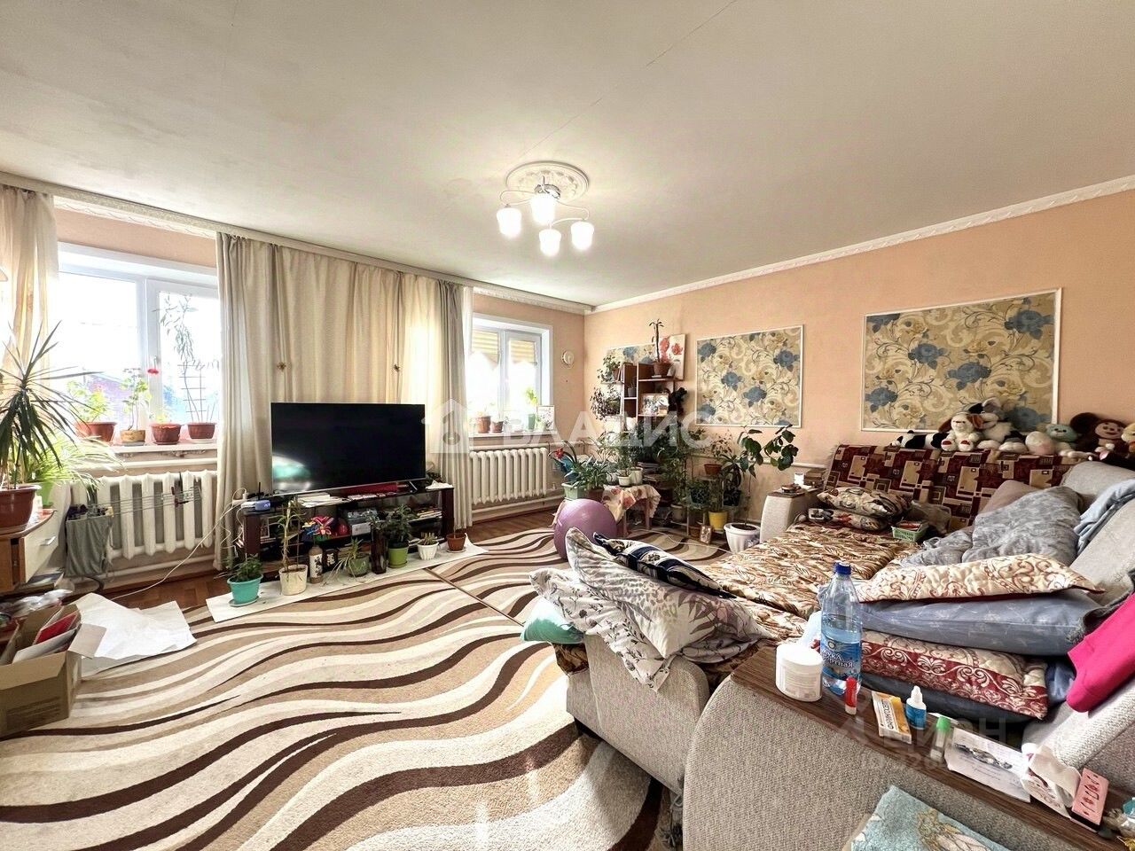 Планировка: большая веранда,3 комнаты,кухня-гостиная,раздельный санузел,подполье: очень вместительное, высокое, оборудованное лифтом-подъемником. Дом очень светлый и просторный, с косметическим ремонтом.
