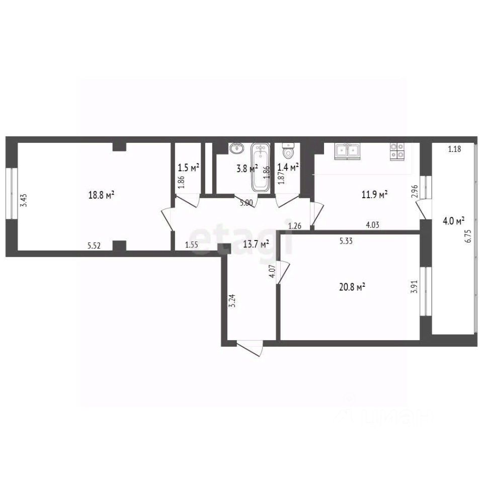 Продается двухкомнатная квартира в современном кирпичном доме 2014 года постройки. Объект отличается продуманной планировкой с изолированными комнатами и просторным коридором, что обеспечивает комфорт и приватность для жильцов. Квартира находится в отличном состоянии благодаря качественному косметическому ремонту, выполненному с использованием современных материалов. Из окон открывается панорамный вид на город, а застекленная лоджия представляет собой полноценное дополнительное пространство, которое можно функционально обустроить. Просторная кухня оснащена всей необходимой встроенной мебелью и техникой, включая вытяжку, что позволяет сразу начать комфортную жизнь. Санузел совмещенный, с новой надежной сантехникой.