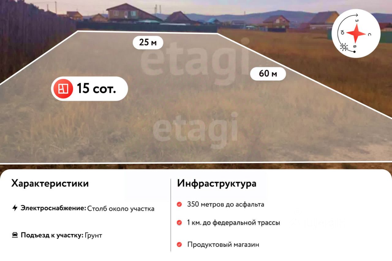 Продается земельный участок площадью 14,86 соток. Участок ровный, без уклонов, чистый. Готов к строительству. Рядом установлены столбы линии электропередач - подведение электроэнергии к участку возможно, перебоев с электроснабжением нет. Соседи уже построились, инфраструктура активно развивается. Очeнь близко ГPЭC, KСK, в 5 минутax eзды на мaшинe, ходят aвтобусы.