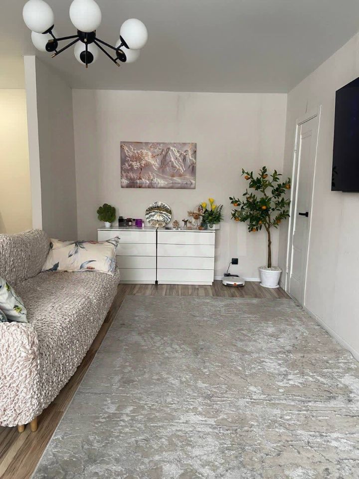 В квартире выполнена перепланировка: кухня совмещена с гостиной. Кухня ocнащeнa холодильником, варочной панелью и духовым шкафом, также в вашем распоряжении будут чайник, вся необходимая посуда и столовые приборы. В просторной светлой гостиной находятся диван, комод и телевизор, а также удобная закрытая гардеробная и выход на балкон. В спальне двуспальная кровать и вместительный шкаф. Санузел совмещённый, оборудован ванной и стиральной машиной. Квартира чистая, теплая, окна выходят в тихий двор.